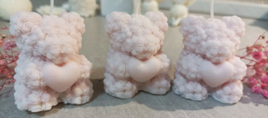 Bomboniera con Candela mini teddy , 5x5 circa, con confezione trasparente, tre confetti e tag personalizzato
