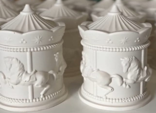 Bomboniera delicatissima a forma di Carosello in polvere di ceramica, (contenitore semplice, vuoto all'interno) Confezione inclusa